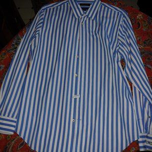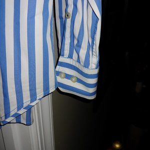 Banana Republic Mens Size Medium Blue Striped White 100% Cotton Shirt