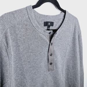 Banana Republic Men's Slub Double-Knit Henley T-Shirt Large Long Sleeve Gray