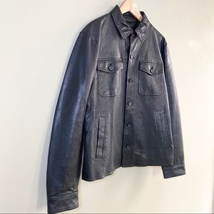 A modern take silhouette of your favorite shirt style jacket, made in luxurious, soft lamb leather. Light insulation used that makes this jacket warm and lightweight.
