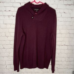 Banana Republic Mens Sweater Shawl Collar 100%Wool Black Cherry Size L
