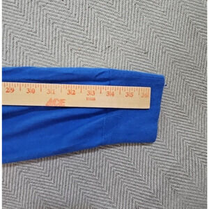 Available in a versatile blue, this sweater fits a size medium and is tailored to a regular fit for ease of movement. The sweater's solid color and classic design make it an ideal choice for a range of casual occasions, from a relaxed day at the office to an evening out. It features a stretch fabric that allows for flexibility while maintaining a sleek silhouette.