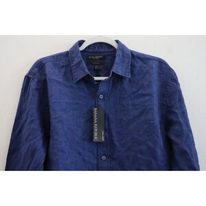 Banana Republic Men's Sz M Navy Blue Standard-Fit Button Down Linen Shirt $85
