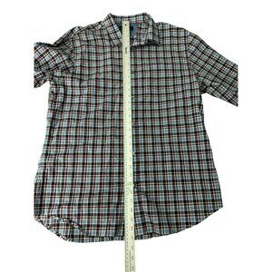 This Banana Republic shirt offers a tailored slim fit, making it an excellent addition to any wardrobe. Crafted from soft wash cotton, it combines comfort with a sleek, modern plaid design.