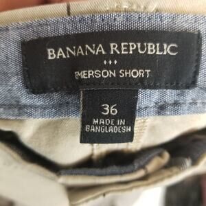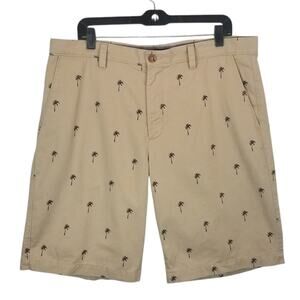 Banana Republic Men's Tan Khaki Palm Tree Flat Front Cotton Emerson Shorts 36