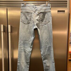 Banana Republic Mens "The Traveler Luxe" Slim Fit Light Blue Jeans with Stretch: 30" x 32" Color is most accurate in first two photos and detailed shots.