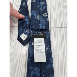 Banana Republic Men’s Tie Navy Blue Dandelion Floral Print Polyester Necktie