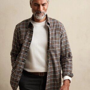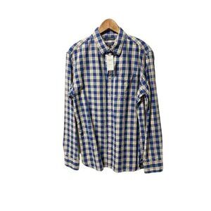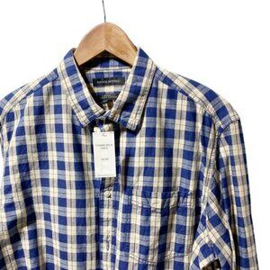 Banana Republic Men's Untucked Button Down Shirt Blue Check Plaid