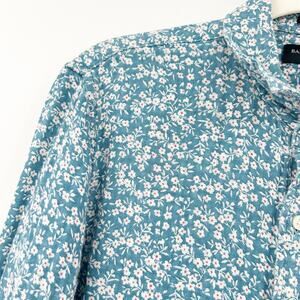 Banana Republic Mens Untucked Fit Gauzy Cotton Ditsy Floral Long Sleeve Button Up Shirt in Blue Teal and White. Size medium.