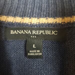 Banana Republic Men's Wool Pullover Sweater Sz Large 1/4 Button Ribbed Mock Neck