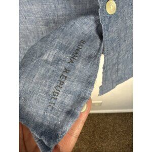 Banana Republic Men's XL 100% Linen Button Up Shirt Blue LS Pocket