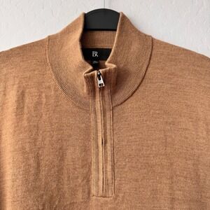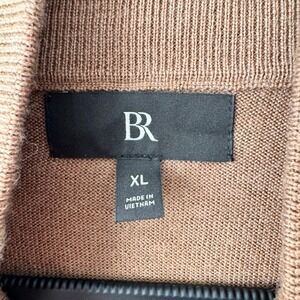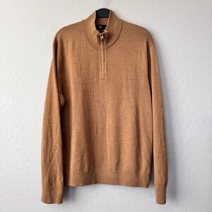 Banana Republic Mens XL 100% Merino Wool Half Zip Pullover Sweater Brown