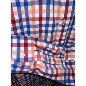 Upgrade your wardrobe with this Banana Republic Men’s Button Down Shirt in size XL, featuring a vibrant red, blue, and white plaid pattern. Crafted from 100% cotton, this shirt offers breathable comfort and a polished look that’s perfect for both casual and business-casual settings.