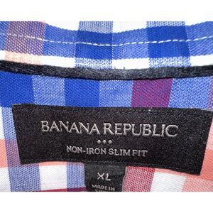 Banana Republic Men’s XL Button Down Shirt – Red Blue Plaid – 100% Cotton