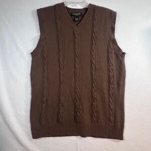 Keywords: Banana Republic, Sweater Vest, Men's Vest, Brown Vest, Lambswool Vest, Cable Knit, Sleeveless Sweater, XL, Extra Large, V-Neck Vest, Preppy Style, Business Casual, Layering Piece, Fall Fashion, Winter Fashion