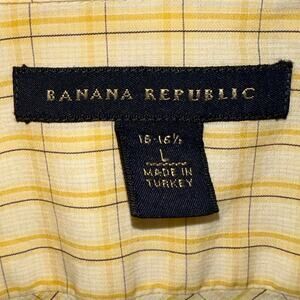 Banana Republic Men’s Yellow Plaid Button Up Dress Shirt Size Large