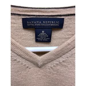 Banana Republic Merino Extra Fine Wool Beige V Neck Sweater Pullover Size M