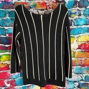 Banana Republic Merino Sweater Wool Blend Boatneck Vertical Striped Sweater S
