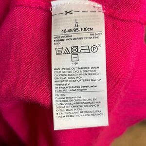This sweater is made by Banana Republic. It’s a bight pink v-neck made of 100% merino wool. Size large and in wonderful pre owned condition. Smoke and pet free home.
