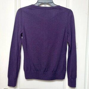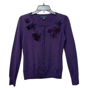 Banana Republic Merino Wool Purple Sweater With Floral Appliqué & Bead Detail S