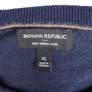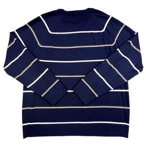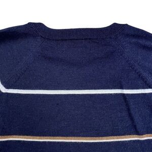 Banana Republic Merino Wool Sweater Mens XL Blue Striped Tight Knit Crew Neck