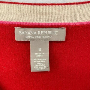 Banana Republic Merino Wool Sweater Women S Red V-Neck Slim Fit Stretch Pullover