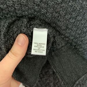Excellent used condition high-quality Merino Wool Jacket fit sweater cardigan! The fabric is knit together and 100% Merino wool! Very soft and comfortable! There is chic black fabric detailing along the perimeter of the jacket and the pocket openings. A stunning, versatile, cardigan tmade to last for years!