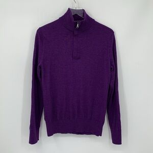 Banana Republic Merino wool quarter zip sweater heather purple mockneck women M