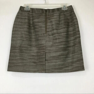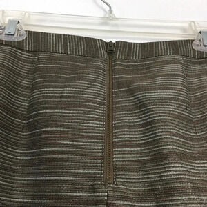Banana Republic Metallic Pencil Skirt. Womens Size 6. Still has tags. Brown metallic striped look. Zips in the back. The skirt has a lining. 46% Cotton, 41% Polyester, 12% Rayon, 1% Metallic. Lining 100% Polyester. No modeling or trades. I20