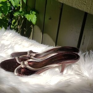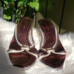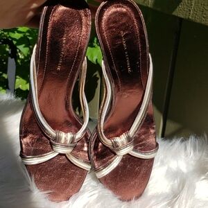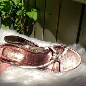 Banana Republic Women’s Metallic multi-color strands of leather with a knot in center. Leather Heels Strappy Sandals Sz 6.5M.