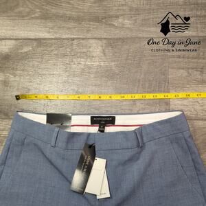 I'm tearing through the savage underbelly of fashion when these blue trousers from Banana Republic ambush my senses – virgin merchandise still adorned with retail bondage in the form of dangling price tags. The fabric is a wild cocktail of polyester, rayon, and spandex, creating a mid-rise silhouette that clings to reality while simultaneously transcending it – the perfect armor for navigating the twisted journey through corporate America or weekend debauchery.
