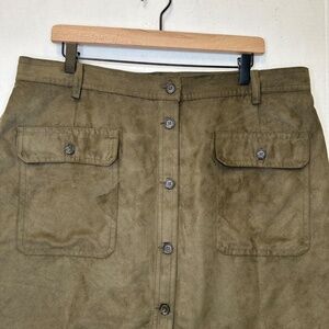 Banana Republic Military Green Suede Button Down With Pockets mini Skirt size 18