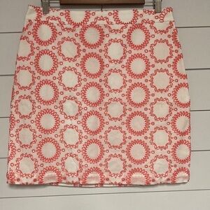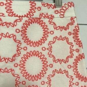Size 8 Banana Republic Milly Collection eyelet skirt. White w/coral pink detail. Concealed side zipper.