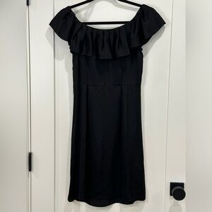 Banana Republic Mini Dress 100% Silk Ruffle Off The Shoulder Black 2 Feminine