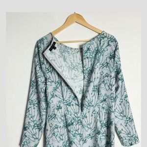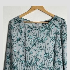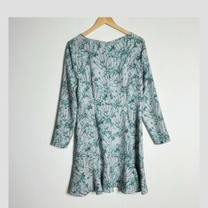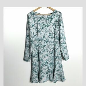 Banana Republic Mini Dress Long Sleeve Ruffle Hem Fit And Flare Grey Blue Print Size 12