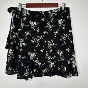 Banana Republic Mini Skirt Size 10 petite Black Wrap Ditsy Floral