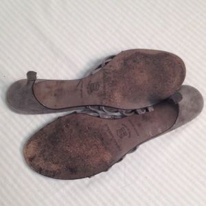 Approx 3" heel. Banana Republic "Mira" sandal. Grey, size 8. Can ship in original box.
