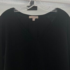 Banana Republic Mixed Media Sweater Women's Size Small Black V-Neck Pullover