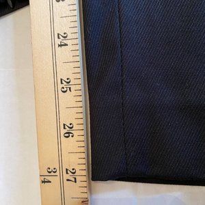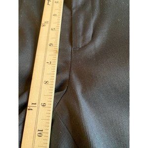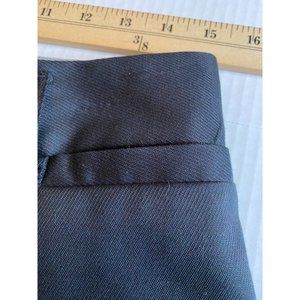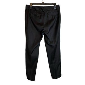 These chic and versatile black dress stretch pants from Banana Republic have an ankle zipper which add a touch of edginess to the classic straight leg design, making it perfect for any occasion, whether it's a party, cocktail, work or casual wear. The mid-rise waist and twill fabric provide comfort and breathability, while the pockets offer functionality. These pants are made from a blend of cotton, polyester, and spandex, ensuring a stretchy and comfortable fit with a flat front. The pants are dry clean only and are available in size 6. Whether you're dressing up or down, these pants are a must-have for any fashion-forward woman.