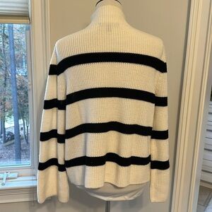 Banana Republic Mock Neck Black & Cream Stripe Sweater, Wool Blend, Size Medium
