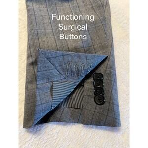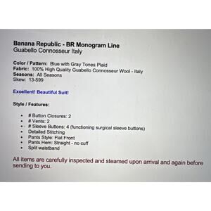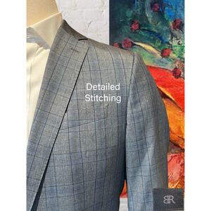 Banana Republic Monogram 40L 35x31 Slim Blue Gray Plaid Suit Guabello Connosseur