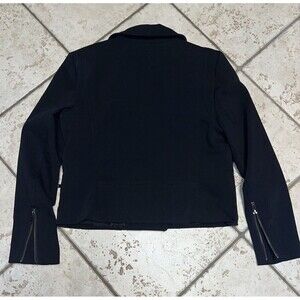 Banana Republic Moto Jacket Womens 12 Black Long Sleeve Pockets Collar Side Zip