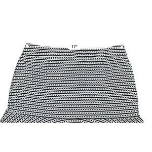Banana Republic Black Cream Florence Chain Geometric Trumpet Skirt sz Small. Beautiful design with sophisticated style that will go from the work desk to dinner. Disclaimer: size tag cut out. Please use measurements to determine size. My best guess using the manufacturer's size chart is a 4/6.