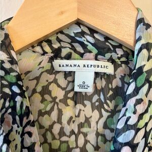 Stylish Banana Republic blouse with a multicolor pattern. Features a mix of green, black, and white. Perfect for any occasion.