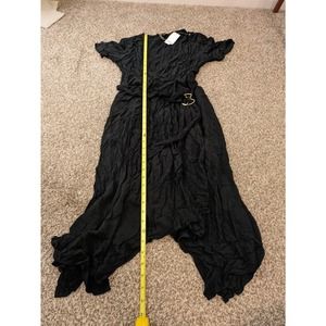 Brand new with tags. Women's wrap dress in black featuring short sleeves and a belt with a golden buckle