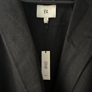Brand-new with tags Banana Republic double-faced recycled wool-blend wrap coat in black. So many ways to style this coat. Unlined. Pockets. Slit in the back. Comes with belt, and it also looks terrific open. Women's size medium. Flat, it measures roughly 22 inches pit to pit and it's about 47 inches long. Great for the holidays. MSRP $320.