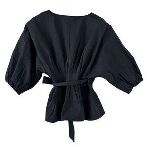 Banana Republic NWT Black Tie Waist Half Puff Sleeve Top Size Medium (A)