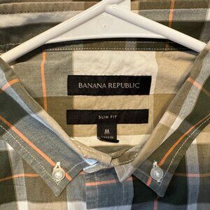 Banana Republic NWT Men's Medium Tan/Brown Plaid 100% Cotton Shirt