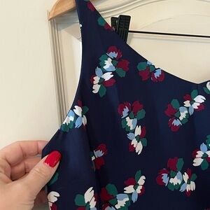 EUC excellent condition & quality. Rich navy blue with colorful floral accents by Banana Republic. Polyester. Camisole. Adjustable straps. Measurements in photos. Women’s size Large. Smoke free home
