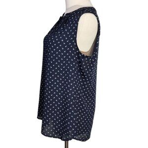 Banana Republic Navy Anchor Button Front Sleeveless Top Women's Petite Size 8