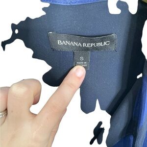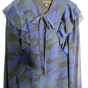 Banana Republic Navy Blue Black Camo Printed Tie Collar Blouse Small